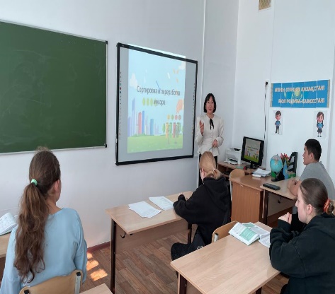 “Қалдықтарды бөлек жинау бойынша эко-мәдениетті қалыптастыру” жобасы аясында 7-9 сынып оқушыларымен “Пластиксіз 1 күн” эко-челленджі.
