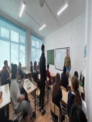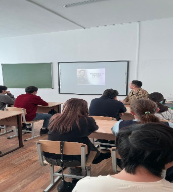 Қазақстан Республикасы Қорғаныс министрлігінің Режим мен қауіпсіздікті қамтамасыз ету жөніндегі әскери полиция жасағының аға офицері, майор Әлібек Қайрат Кәкенұлына 2025 жылдың 11 желтоқсанында «№39 кешкі (ауысымды) мектеп» КММ оқушыларына «Ерлік сабағы. Бауыржан Момышұлының 115 жылдығына орай: рух, ерлігі және жауынгердің мәңгілік құндылықтары» тақырыбында патриоттық сабақ өткізді.