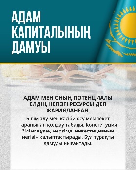 4. Адам және оның әлеуеті елдің басты ресурсы ретінде танылады. Мемлекет білім беру мен кәсіби дамуды қолдайды.