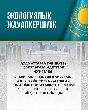 2. Табиғатқа ұқыпты қарау азаматтардың міндеті ретінде бекітіледі. Экологиялық нормалар конституциялық мәртебе алады.