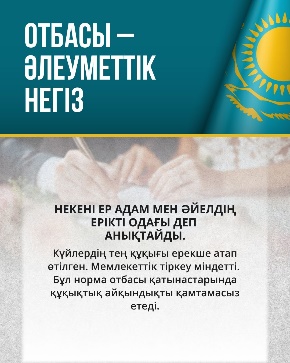 9. Неке ер мен әйелдің ерікті одағы ретінде айқындалады. Отбасылық қатынастарда ерлі-зайыптылардың тең құқықтылығы атап көрсетіледі.