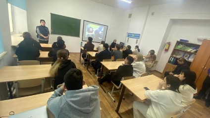 17 ақпан 2026 жыл Астана қаласы ПД есірткі қылмысына қарсы іс-қимыл басқармасының қызметкерлері подполковник Әлия Қибатқызы мен капитан Эльмира Кабиденова мектеп оқушыларына есірткінің зияны, киберқауіпсіздік және заңсыз «дропперлік» схемаларға тартылудың алдын алу бойынша дәрістер өткізді.