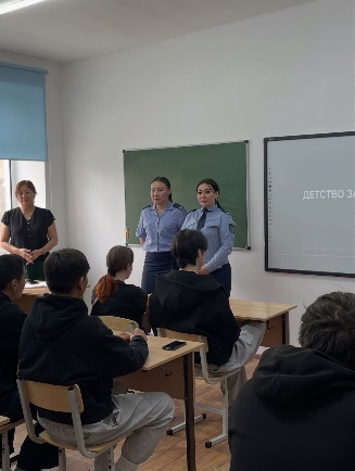 Полиция қызметкерлерінің қатысуымен «Заң және тәртіп» бірыңғай қауіпсіздік сабақтары өтті. Шара барысында “Детство за стеной” деректі фильмі көрсетілді.